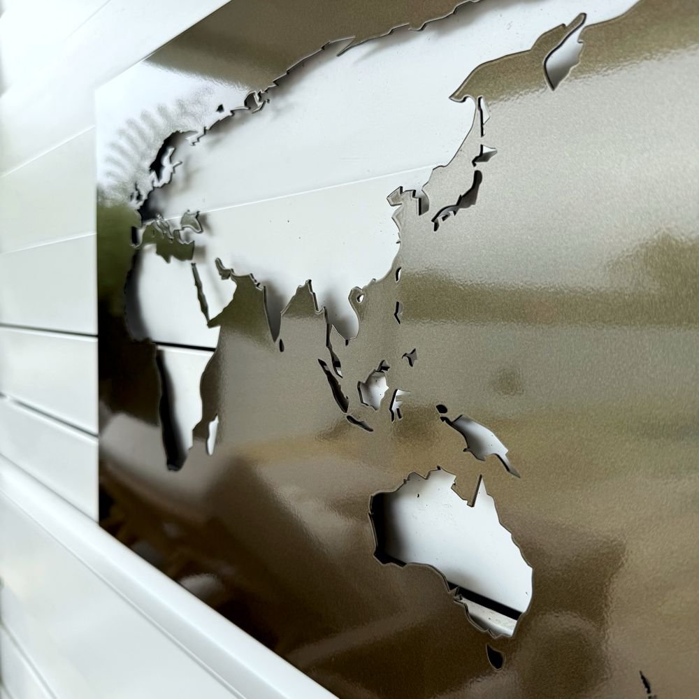 A world of detail, cut in steel. This striking wall piece captures the continents in crisp, laser-cut precision—rendered in a...