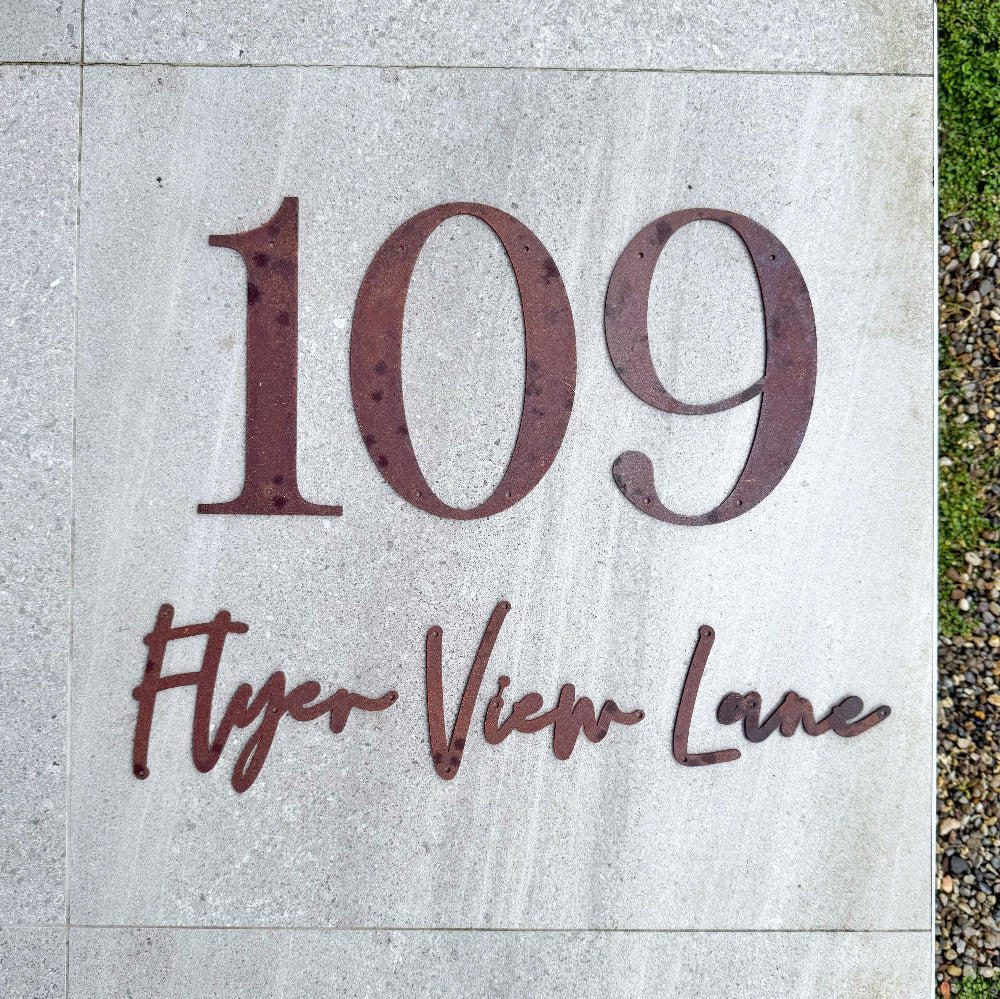 Custom street number and street name in a handwritten style. You choose the steel colour/type to suit your home. Made...
